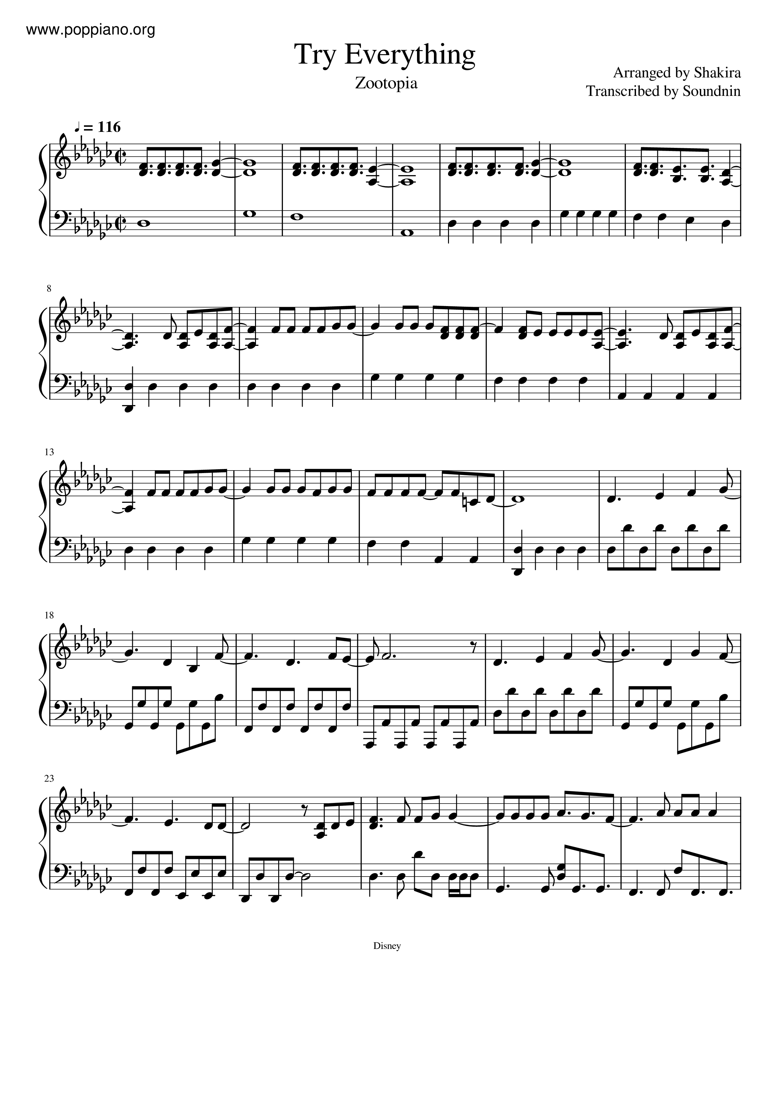 Shakira Zootopia Try Everything Sheet Music Pdf Free Score Download